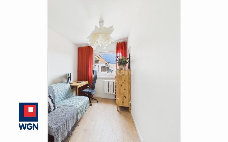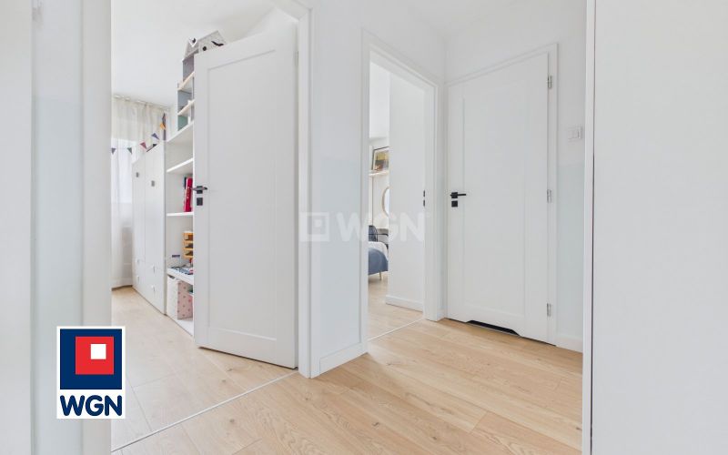 W lokalu znajduje się również nowoczesna, kompaktowa toaleta wykończona w wysokim standardzie, przytulna sypialnia z łóżkiem dwuosobowym oraz dwoma pojemnymi szafami, pięknie urządzony pokój dziecięcy oraz dodatkowy pokój, który obecni właściciele wykorzystują jako biuro do pracy zdalnej.
